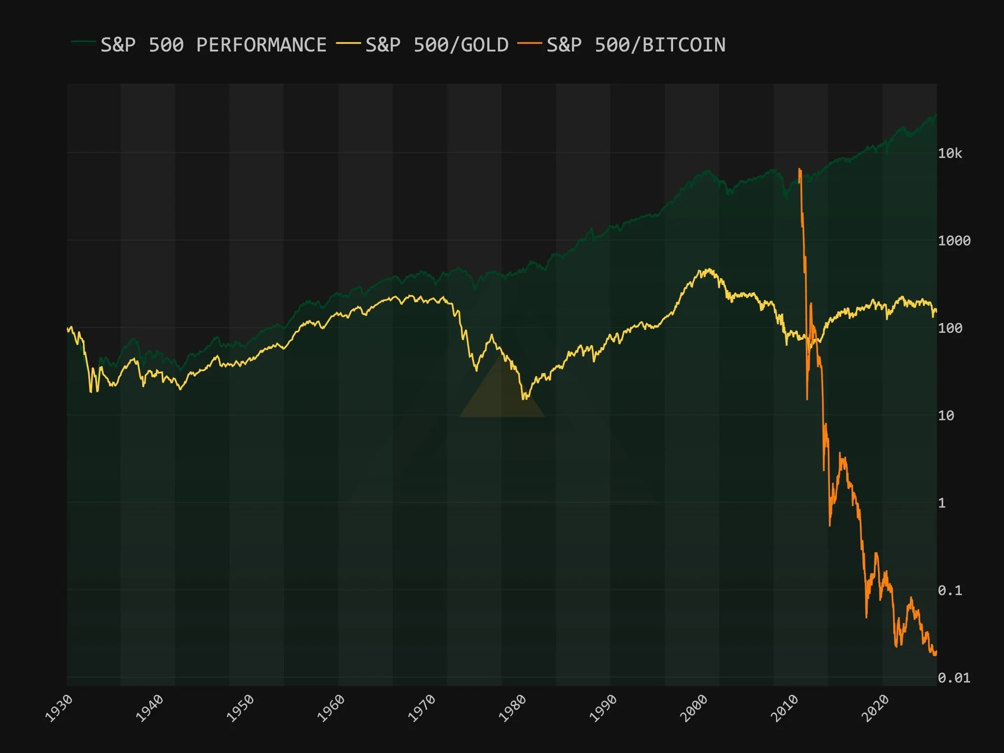 “The S&P 500 is up in nominal terms, flat in gold terms, and down in Bitcoin terms.”