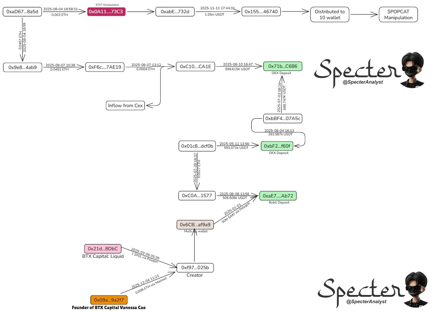 The investigator claims that wallet activity behind these trades is linked to BTX Capital and Cao’s public wallet address, suggesting they may have been behind the whole operation.
